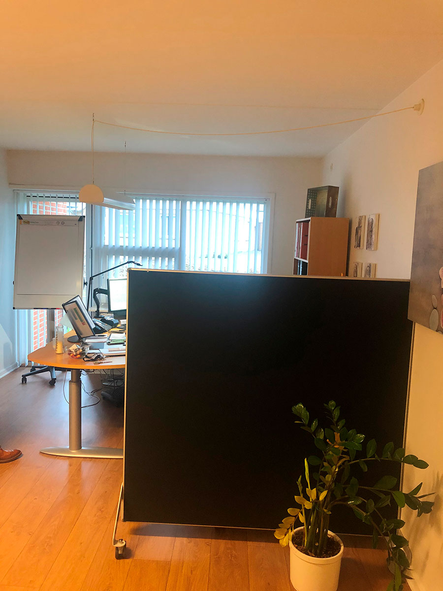 Derudover skaber den lyddæmpende akustikskillevæg en rum-i-rum løsning, som giver mindre forstyrrelser for den lydsensitive beboer, afskærmning af støj fra køkken/TV-stue m.m. Akustikskillevægge skaber ro i mødelokalet og/eller i opholdsstuen. Vi har bl.a. leveret akustikskillevægge til vagtstuer og venterum, så medarbejderen får ro til at koncentrere sig om arbejdet.