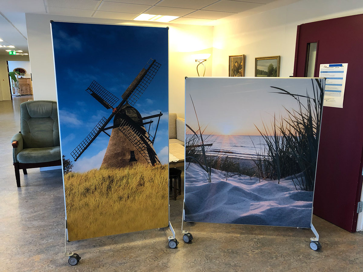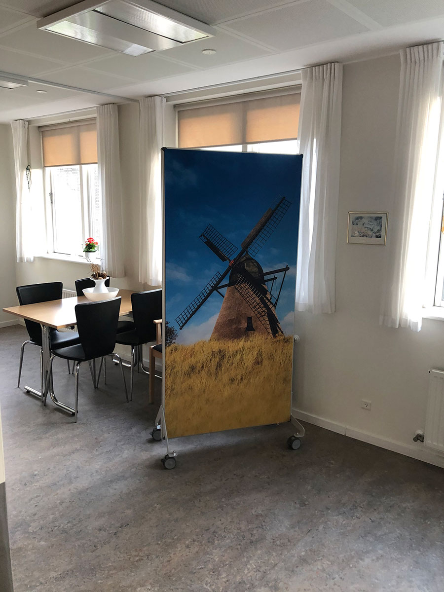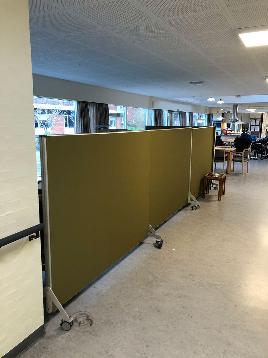 Vores lyddæmpende akustikskillevægge m. fødder/hjul giver jer mulighed for at opdele/ afskærme de ønskede områder på plejehjemmet. De kan også anvendes i akutte-/nødsituationer, hvor afskærmning og diskretion af en beboer kan være nødvendig.